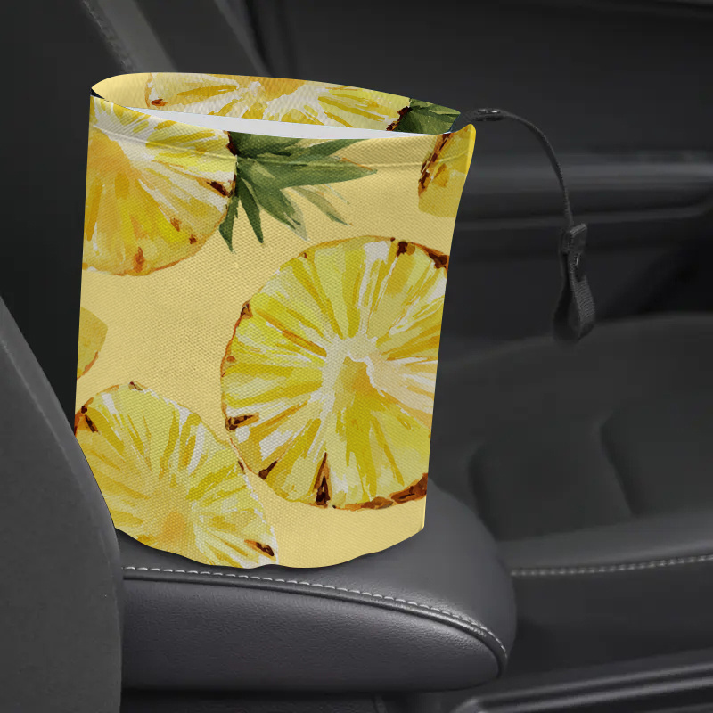 1pc Pineapple Print Car Trash Can - Durable Polyester Fiber, Portable & Stylish Interior Accessory for Cars, Camping, and Kitchens, Vibrant Yellow with Green Leaves, Compact Design for Easy Storage, Car Trash Can, Kitchen Waste Bin, Playful Design, Sturdy