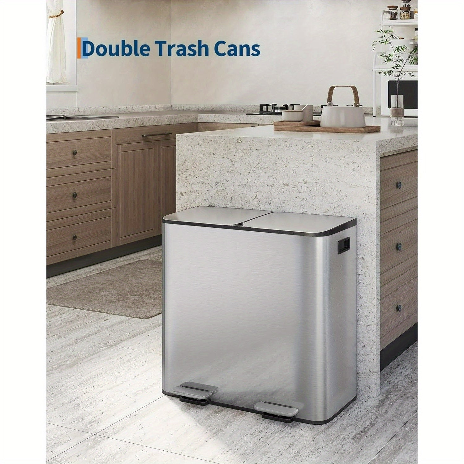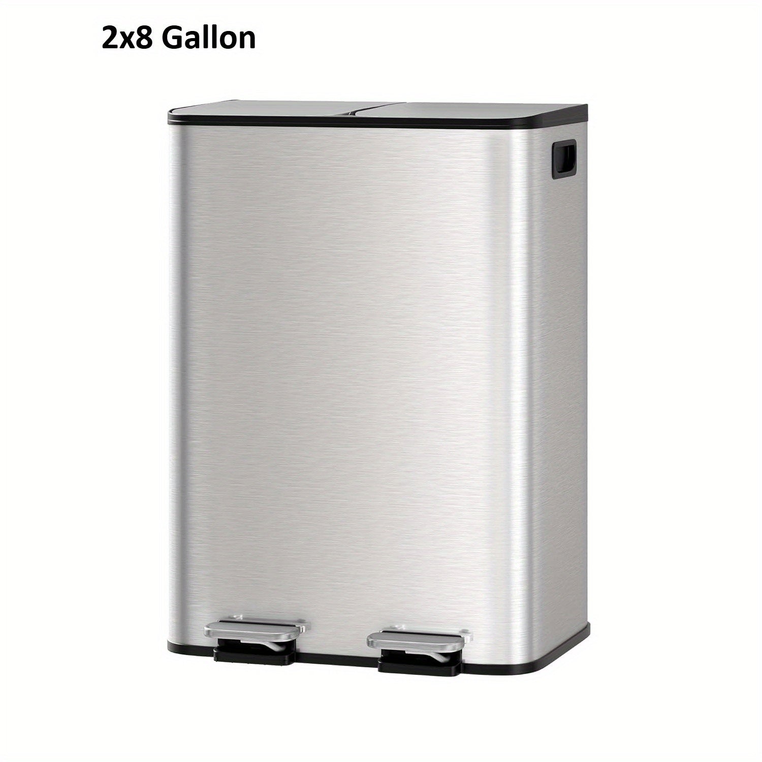 2x8 Gallon\u002F 2x10.6 Gallon Stainless Steel Double Trash Can with Lid for Kitchen, Large Dual Trash and Bin Combo, Step-on Kitchen Metal Stainless Steel Garbage Cans, PP Inner Buckets, Liner Rim, Silvery\u002F Gray\u002F Black