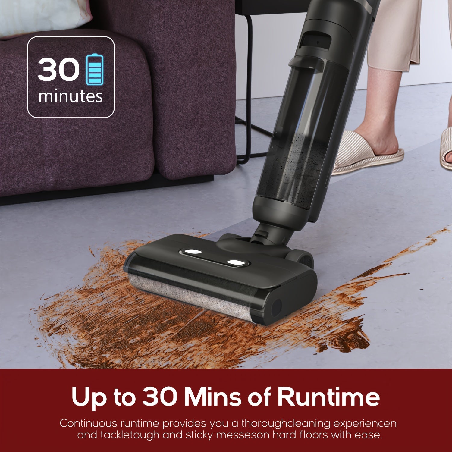 Cordless Vacuum Cleaner, Smart Mop & Broom Wet Dry Combo with LED Display Detachable Space Saving Design Vacuum Mop with Self-Cleaning System, Great for Hard Floors, Sticky Messes And Pet Hair