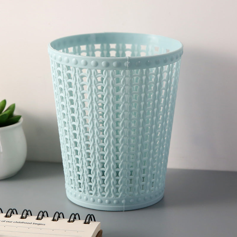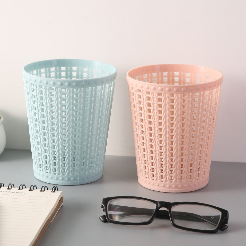 Modern Cylindrical Plastic Mini Trash Can with Hollow Vertical Ridges - Pastel Colors (, Pink, White, Mint Green) | Compact Space-Saving Desktop Waste Bin for, Office, Coffee Table, Bedside | Durable & Lightweight Discreet Bin