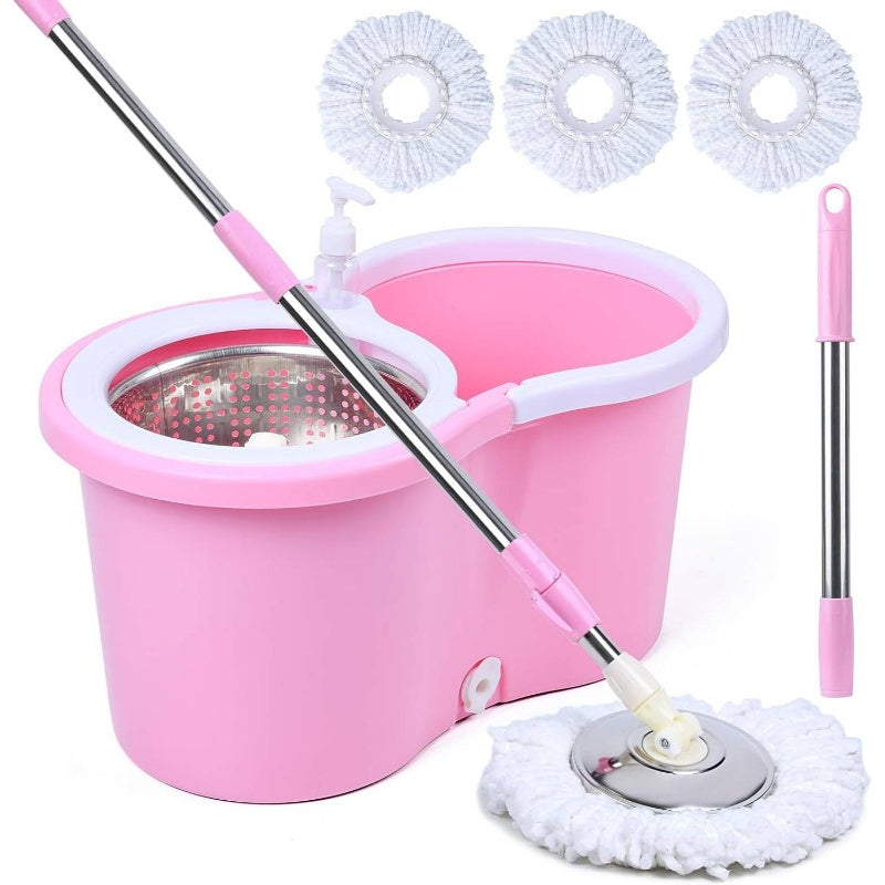 Pink Mop and Bucket Set with 360° Rotating Head & Spin Mopping System, Wet\u002FDry Use with Spray Nozzle, Ergonomic Handle & Collapsible Design - Heavy-Duty Acrylic Construction for Hardwood Tile Vinyl Floors, Space-Saving Storage, Ideal for Home & Comm