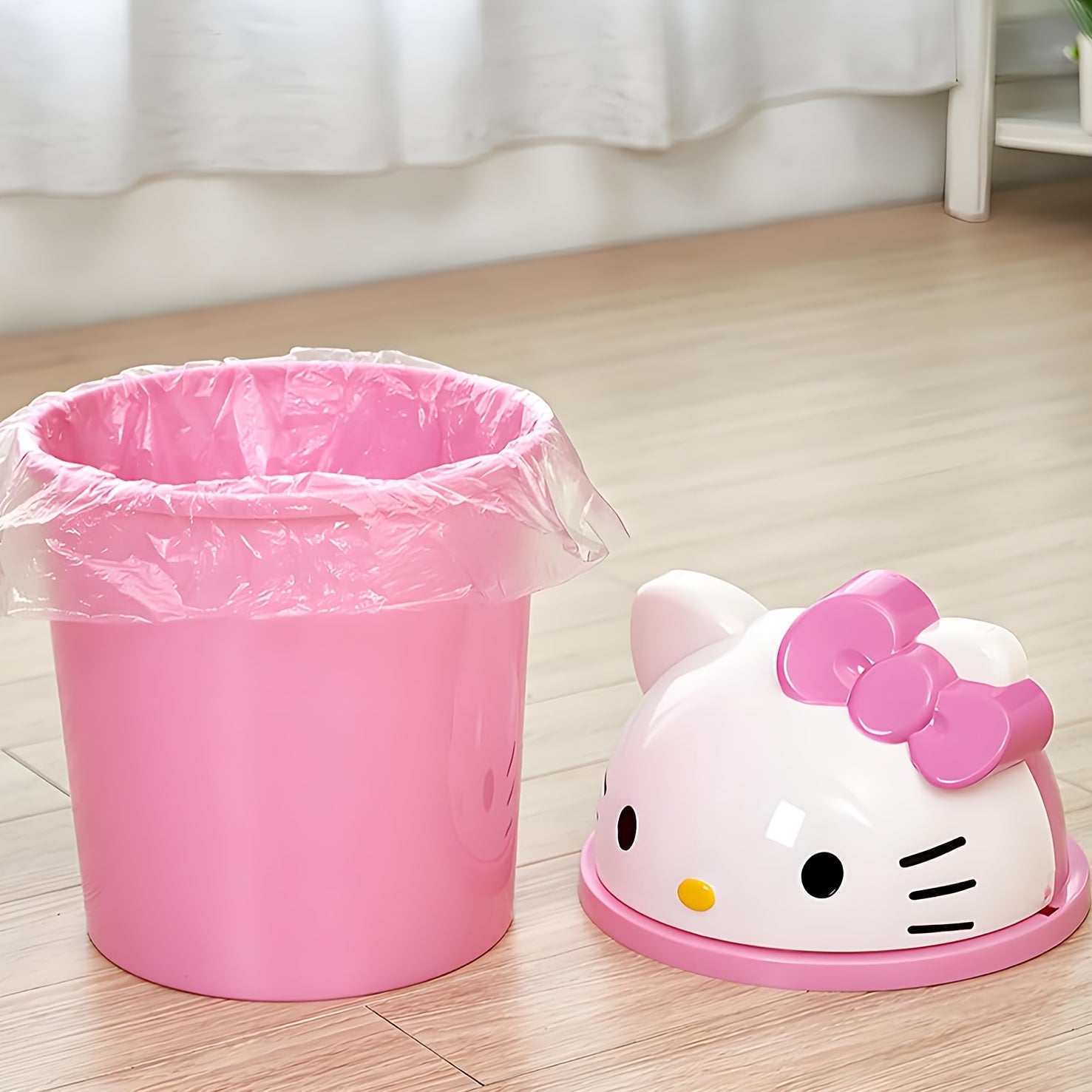 Sanrio for hello kitty Mini Trash Can with Lid - Cute Desk Waste Bin, Compact Decoration with Open-Top Lid, Perfect for Girls' Rooms, Birthday & Holiday Gifts, Office, School, Kitchen - Sanrio Collectible, School Supplies, Playful Aesthetic, Detachable De