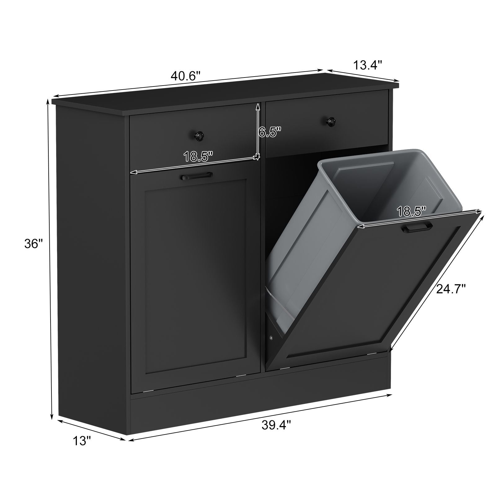Wpond 20-Gallon Heavy-Duty Double Tilt Out Trash Can Cabinet with Deodorizer - Freestanding Dog-Proof Trash Can with Hidden Storage Drawers, Heavy-Duty Construction, Space-Saving Design, Easy Assembly for Kitchen, Living Room, Office - Modern Cabine